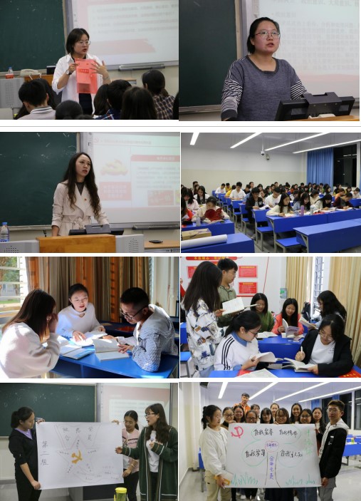 生命科学学院罗晓薇老师、能源与环境科学学院陈盈希老师、物理与电子信息学院梁烨老师,分别以“牢固树立‘四个意识’”、“严守党的政治纪律和政治规矩”、“发挥党员先锋模范作用”为主题,带领全体学员开展了结构化研讨。同学们采取集中学习或自主学习等方式提前学习了《中国共产党章程》《关于新形势下党内政治生活的若干准则》《中国共产党廉洁自律准则》等内容,结合讲座内容进一步提升认识和觉悟,并最终体现在了小组汇报中。