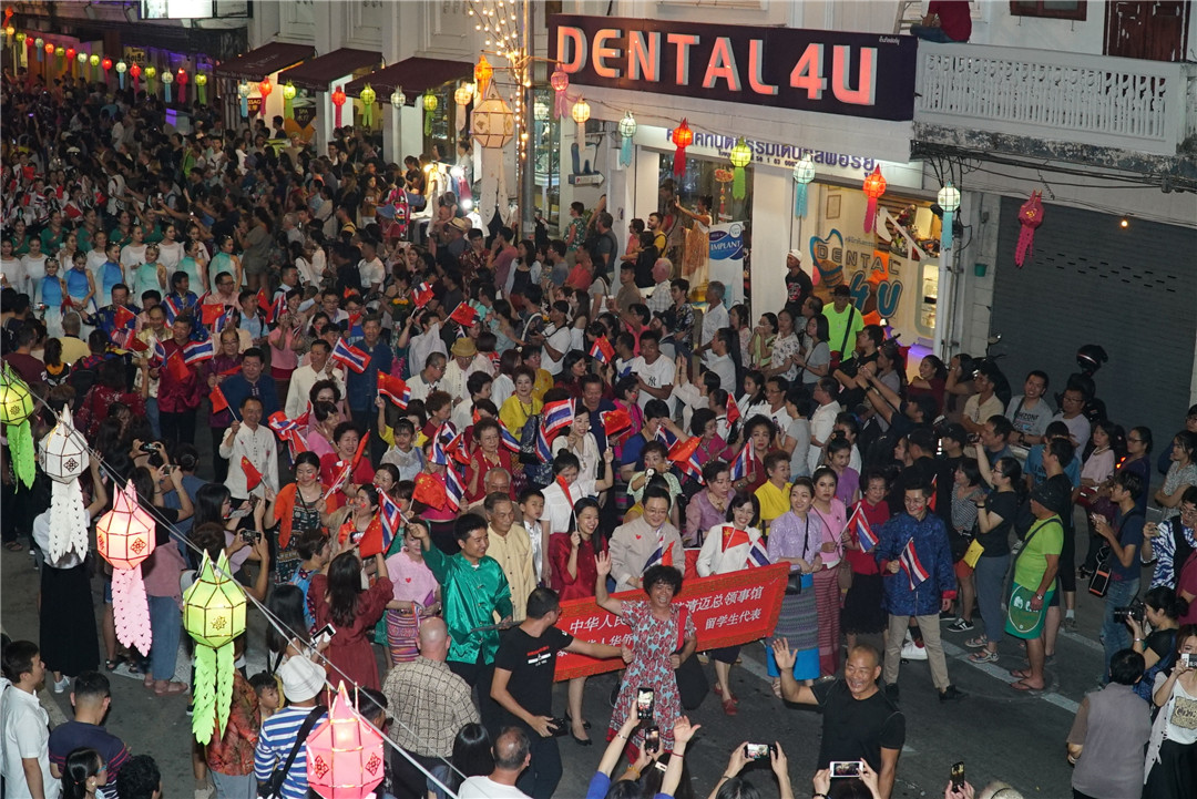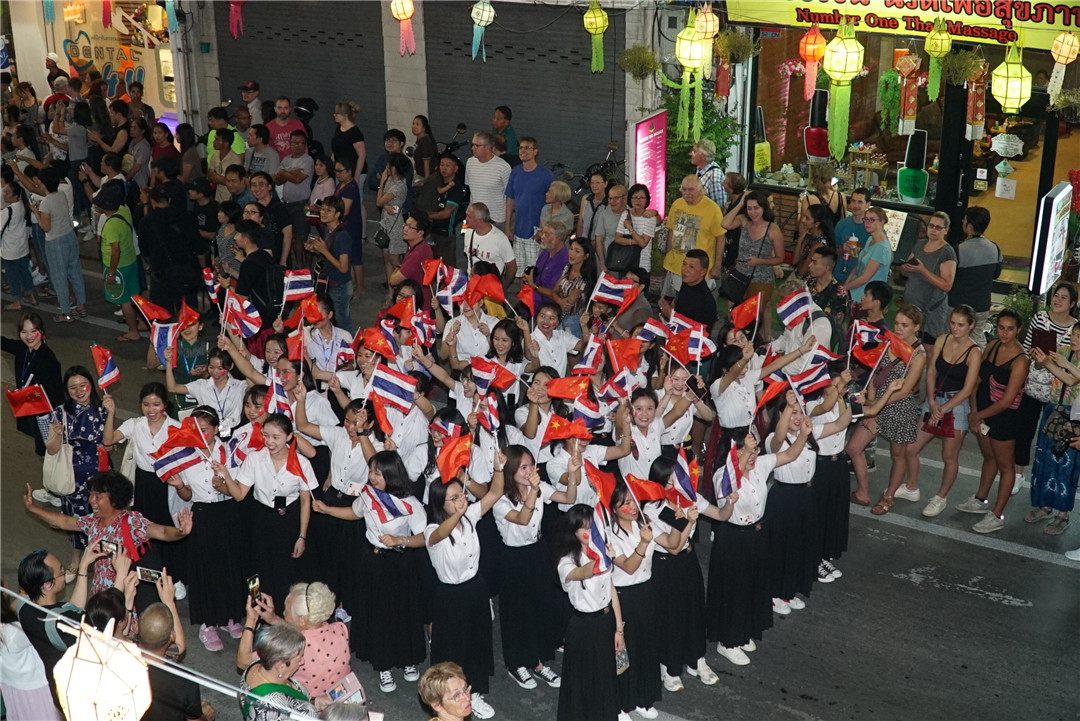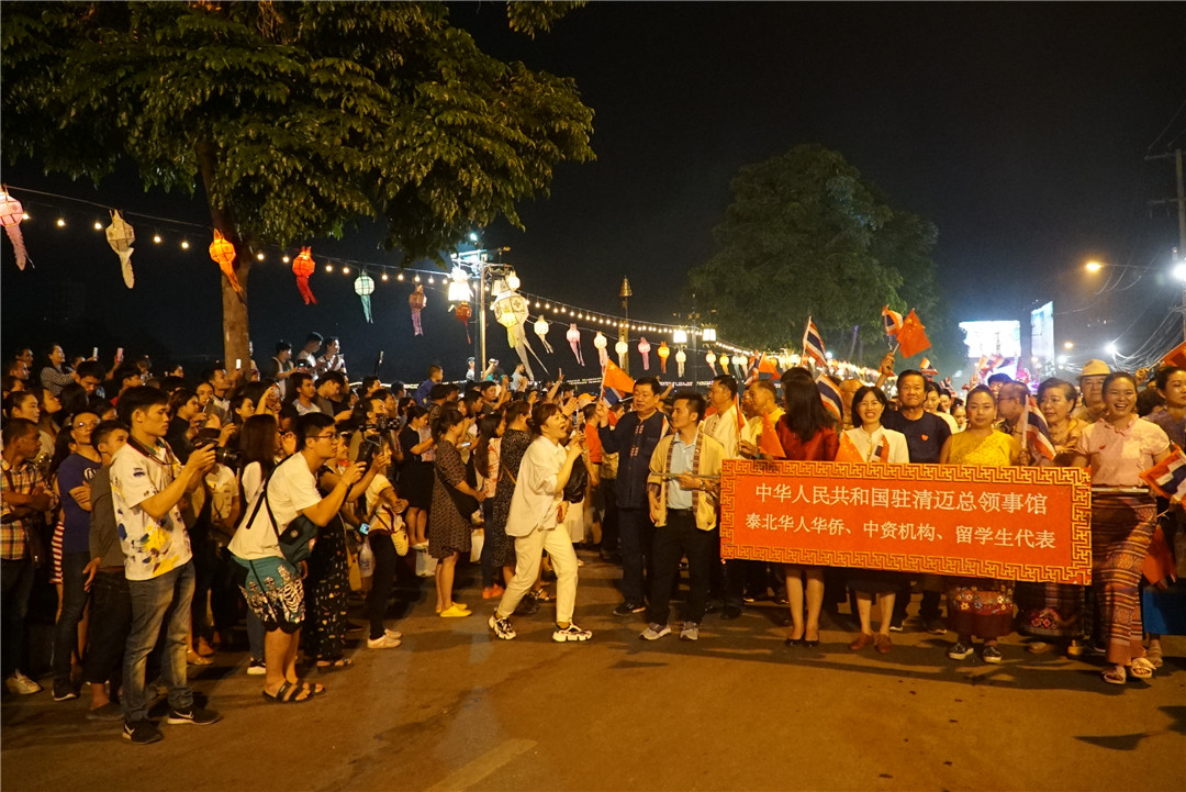 | 11月13日晚,清迈大学孔子学院协助中国驻清迈总领事馆组成游行队伍参与了清迈市政府组织的2019年度水灯节花车游行活动。游行队伍共计两百多人,由总领馆、泰北华人华侨、中资机构代表、孔院教师、留学生代表及孔院“中国风”巡演团方队组成。