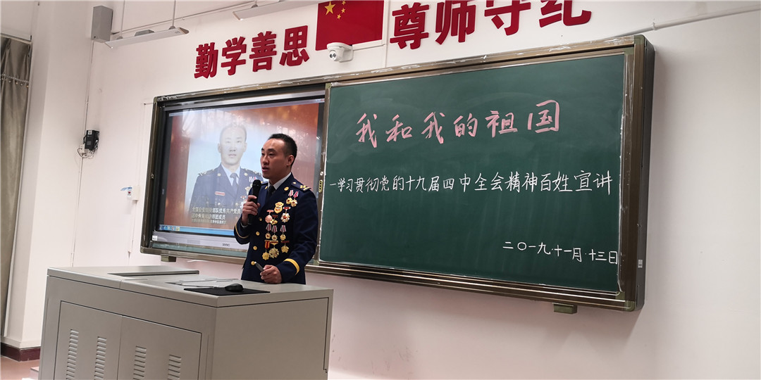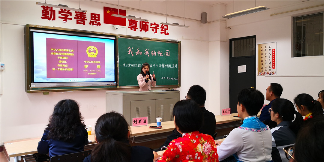 在全国上下隆重庆祝中华人民共和国成立70周年、深入学习宣传贯彻党的十九届四中全会精神之际,由中央宣传部、全国总工会、共青团中央、全国妇联联合主办,中共云南省委宣传部、云南省总工会、共青团云南省委、云南省妇联、云南民族中学承办的“‘我和我的祖国’----学习贯彻党的十九届四中全会精神”百姓宣讲全国宣讲报告会于2019年11月13日在云南民族中学举行。