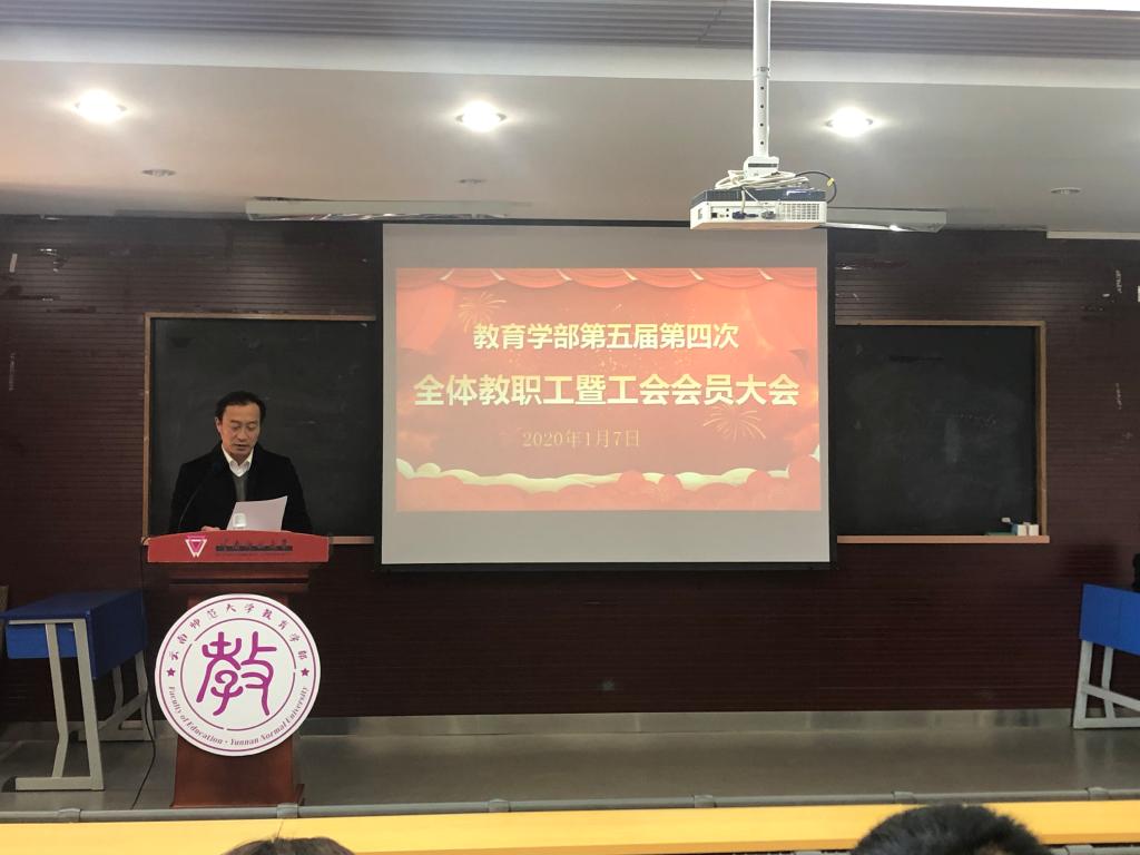 2020年1月7日,kaiyuncom官方网站教育学部在呈贡主校区明德4号楼206召开全体教职工暨工会会员大会和教育学部2019学年度工作总结会议,会议由教育学部党委书记张云主持。