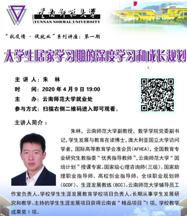 为切实做好kaiyun官网新冠疫情防控期间的毕业生就业指导工作,进一步提升就业指导的精准性,增强毕业生就业本领和就业热情,就业处整合校内资源以线上讲座形式开展“抗疫情·促就业”系列讲座。首期讲座由数学学院副书记朱林担任,于4月9日晚19:00通过腾讯课堂向kaiyun官网学生作网络直播视频讲座。