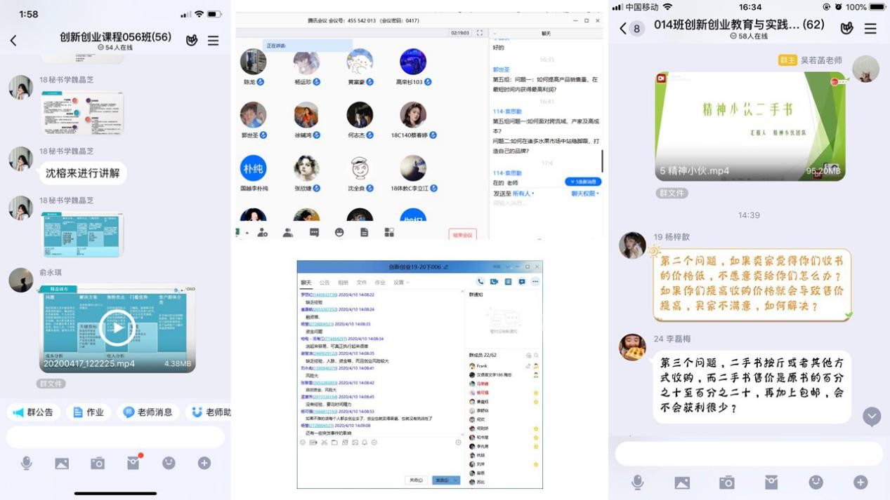 学院制定了《<创新创业教育与实践>(理论)课程线上教学实施方案》、《<创新创业教育与实践>(理论)课程在线教学质量监控实施方案》。《创新创业教育与实践》(理论)课程的线上教学由两部分组成,一是学生通过自主学习完成教学团队自主开发的共享课程《“玩”创未来》,二是正常课表时间,教师融合多种教学方法、工具进行授课,结合学习通、腾讯课堂、QQ群等辅助教学平台进行在线教学。本学期,课程由27名来自不同学院的副书记、辅导员、专业教师和学校就业创业工作人员承担教学任务,其中,共21名教师担任1-8周的线上教学任务。
