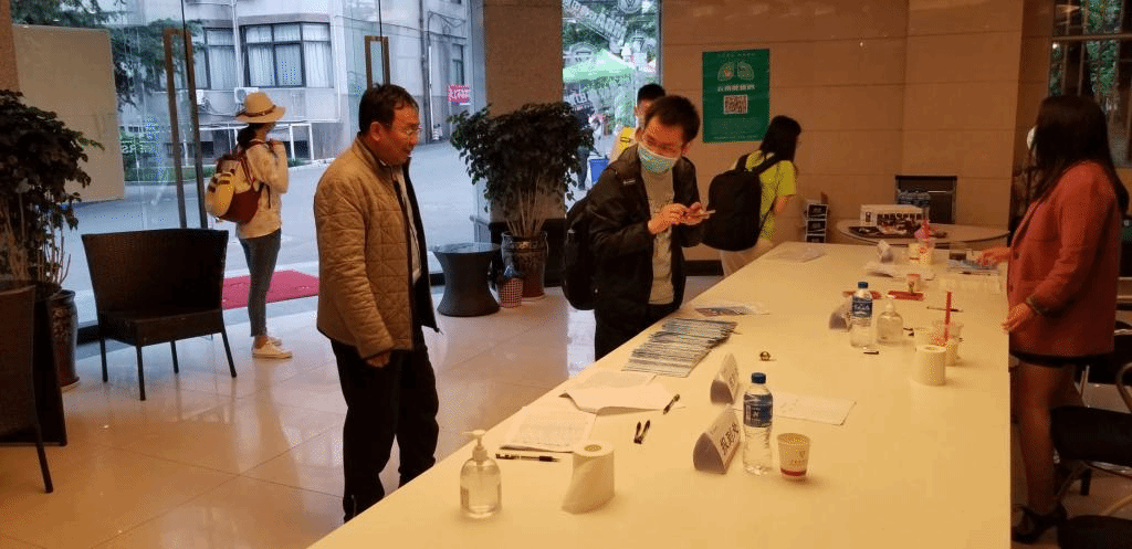 早晨9:00开始,陆续有同学到校,在工作人员的引导下,返校同学保持安全间隔距离,按照规定流程进行行李消毒、体温测量、查验健康码等,现场秩序井然,各环节衔接顺畅。