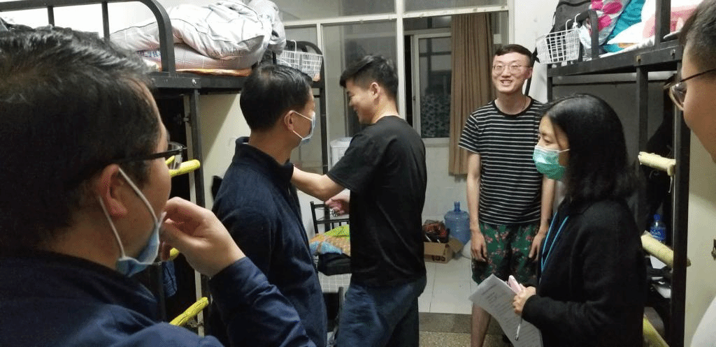 晚上,学院领导班子、辅导员、班主任还到学生宿舍走访,和返校同学进行了交流,了解学生们到校情况、宿舍住宿情况及目前的困难问题等。