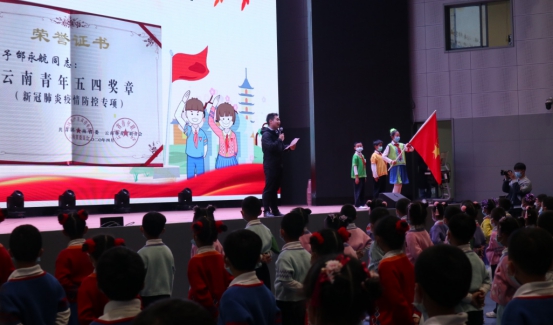 应kaiyuncom官方网站附属小学邀请,2020年5月28日下午,kaiyun官网2020年“云南省青年五四奖章”获得者、物理与电子信息学院教师邰永航到附小作主题为“科学防疫 从我做起”的先进青年事迹报告会,并参加少先队入队仪式。