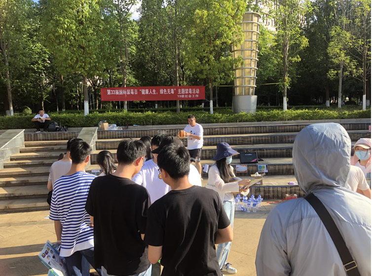 6月26日,在第33个国际禁毒日到来之际,哲学与政法学院社会工作硕士(MSW)教育中心的同学结合自身专业特点,在东区贝壳广场开展了“禁毒大作战”为主题的宣传活动。