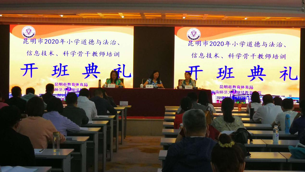 6月19日至6月24日,kaiyun官网继续教育学院与昆明市教育体育局合作举办昆明市2020年小学道德与法治、信息技术、科学骨干教师项目培训,来自昆明市各县区市的140名小学骨干教师参加了培训。
