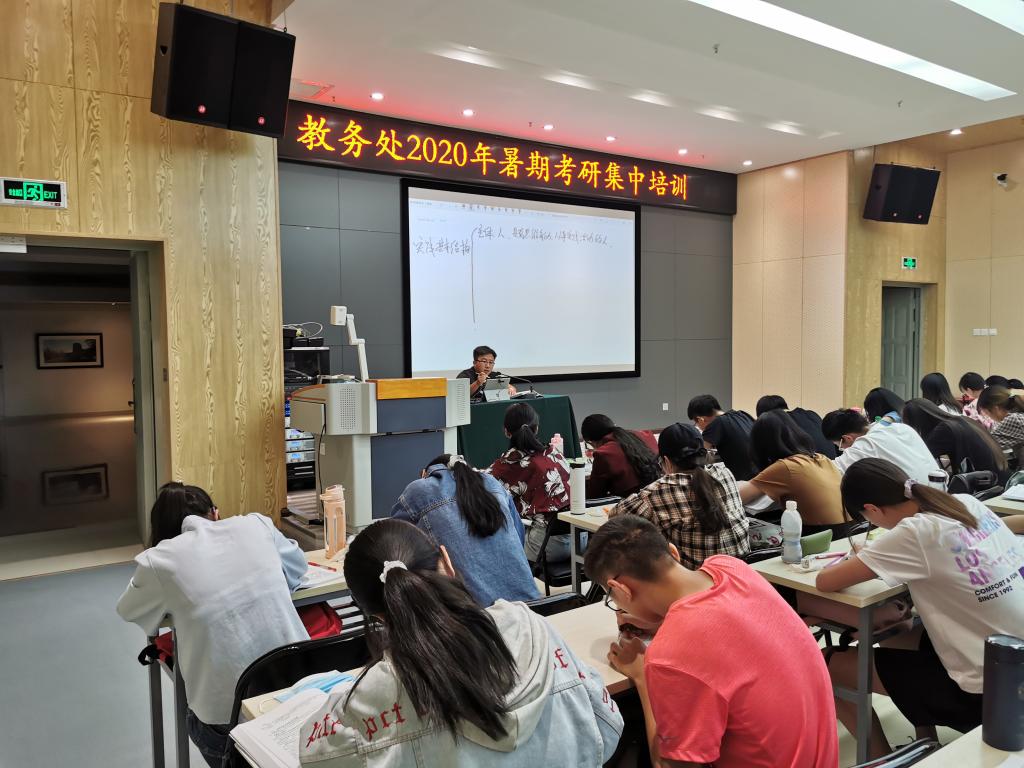 为帮助学生备考研究生招生考试,在前期调查征集学生考研需求和建议的基础上,教务处于7月22日至8月4日面向2021年拟考研学生开展免费暑期考研集中培训。此次培训采取线下培训+线上直播的方式进行,线下培训场地设在国家教师教育教学实验中心101报告厅,线上直播依托学校网络教学平台进行,参加线下培训的学生人数达170人,观看线上直播的学生人数超过700人。