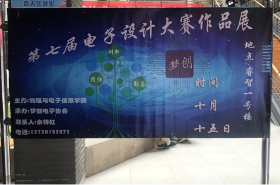 2020年10月15日下午,物理与电子信息学院第七届大学生电子设计竞赛作品展于在睿智一号楼一楼大厅举行,该项活动是kaiyun官网“创享云师”双创活动系列活动和物理与电子信息学院课外素质教育项目之一。来自物电学院、经管学院的39份作品参加了展示和评审,共评出专业组一、二、三等奖共18项,非专业组一、二、三等奖共21项。