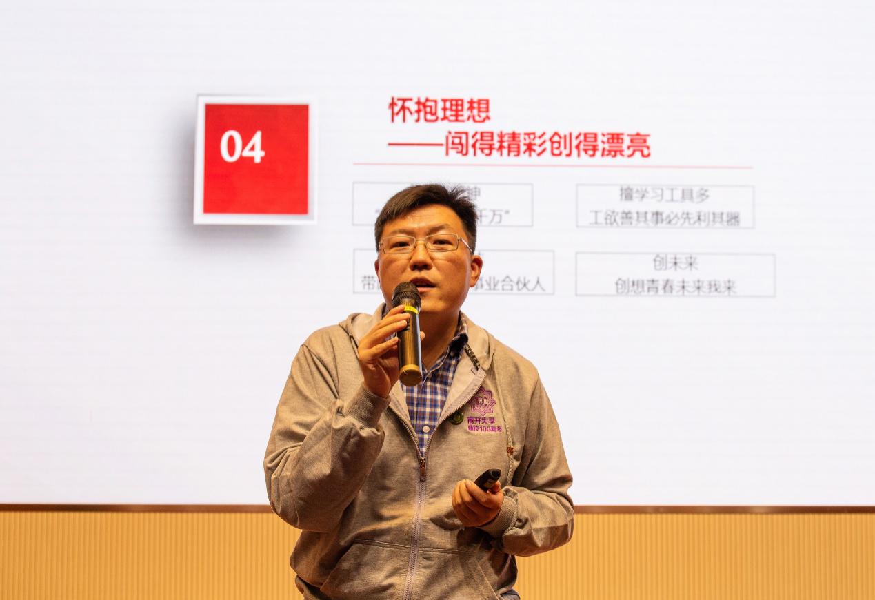 通过轻松愉悦的自拍短片,浦天洋老师引出“仰望星空—你有什么样的创业梦想”,现场引导学生从有什么、做什么、能做吗、怎么做、要什么、能成吗的“梦想创业”中到“怎么动手创业”,启发学生在“梦想创业”中通过资源、战略、可行性分析、组织计划、目标任务、盈亏平衡感方案、救济措施和兜底设计到“脚踏实地—怎么动手创业”。他结合自身工作实例,告诉大家:“怀抱理想”,要有企业家精神、擅于学习、团队团结,同时还要“遵法制守规矩”,才能在创业的道路上,“闯得精彩,创得漂亮”。最后,浦老师向学生们讲述了创业青年榜样故事,学习他们身上那种勇敢、勤奋、创新、担当等创业精神品质的同时,更要学习他们创业成功后投身公益,感恩社会的服务意识和奉献精神。