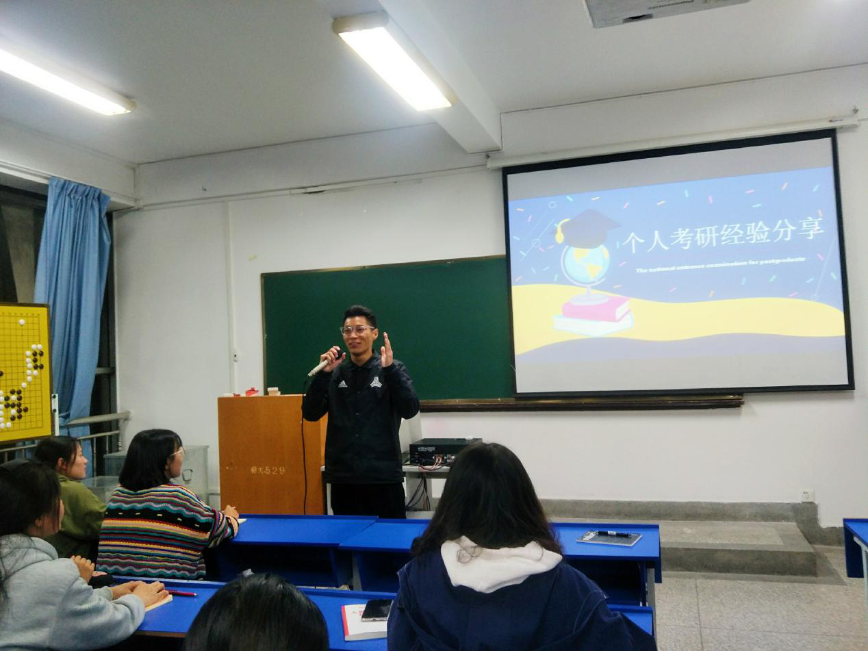 为鼓励并号召职业技术教育学院本科生积极考研,帮助他们确立好自己的考研目标、把握正确的考研方向及备考策略,研究生党支部于10月16日晚在田家炳教育书院开展了“助力考研梦”主题讲座活动。活动由研究生党支部左飞同志主持,赵寅志、刘忠君及苏迪三位同志分享了考研经验,职业技术教育学院志愿考研的本科生参加。