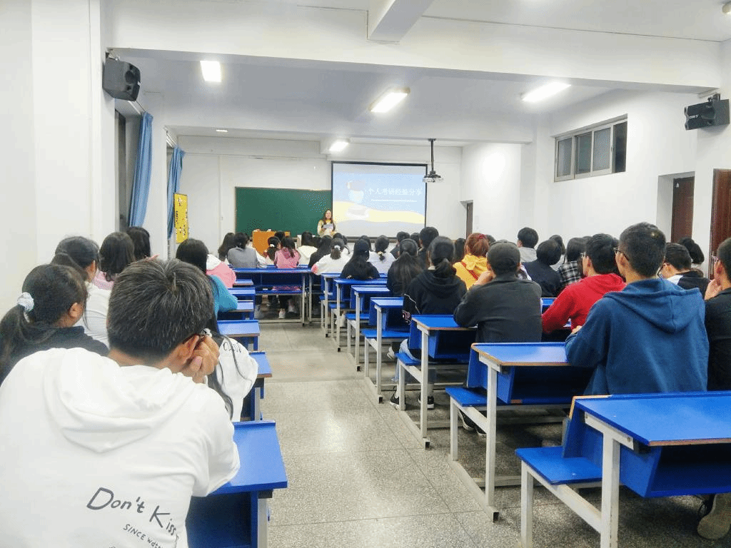 刘忠君同志分享了她的考研初试和复试经验。她认为要正确认识自身实力、扬长避短,在学习时候需要严肃对待专业选择并且严格地进行自我管理,并耐心教大家如何做好教育类专业课笔记、背诵好专业课知识。刘忠君表示,复试需要提前准备,还可以模拟面试然后经他人点评或自录视频矫正不足。希望同学们“今年一研为定,明年一定研一”。