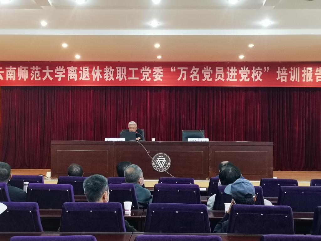 今年是纪念中国人民志愿军抗美援朝出国作战70周年,10月27日下午,离退休教职工党委在一二·一校区田家炳教育书院二楼报告厅召开了“万名党员进党校”培训报告会。全国老有所为先进典型人物、享受云南省政府特殊津贴专家、云南省近代史学会会长、kaiyun官网退休老党员吴宝璋教授给全体党员作了《立国之战扬国威——纪念抗美援朝70周年》的讲座。报告会由离退休教职工党委书记王琼玲主持,近120名离退休党员和在职党员参加了报告会。