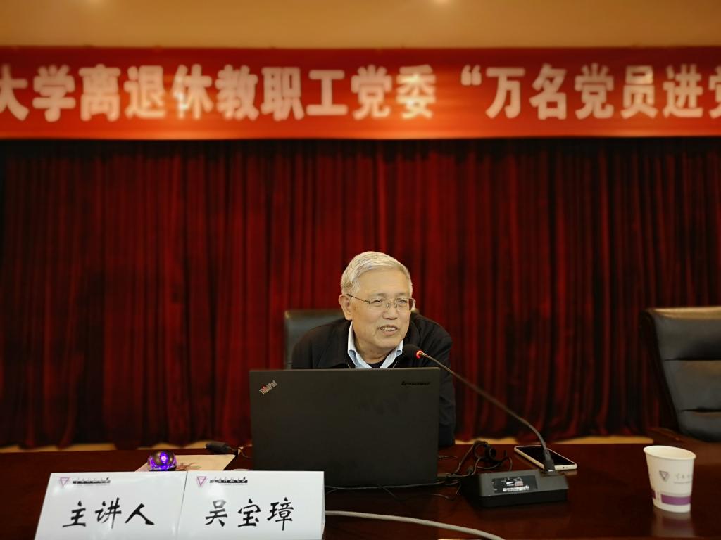 吴宝璋教授的讲座围绕朝鲜战争爆发;美帝侵入朝鲜和台湾海峡;艰难而英明的决策:出动志愿军抗美援朝;五次战役;边打边谈的激烈较量;抗美援朝的伟大胜利及其历史意义等方面,对中国人民志愿军抗美援朝出国作战进行了较为全面系统的讲授,讲座语言生动、数据翔实、通俗易懂,对老党员们进行了一次“四史”学习教育,受到与会党员们的好评。