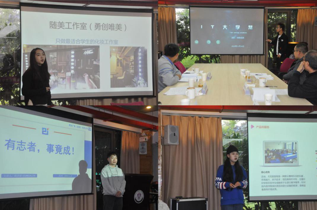 本次活动特邀请昆明人力资源和社会保障协会副秘书长、云南双创孵化园区管理有限公司副总经理程琳,云南杨丽萍文化传播有限公司营销总监任芳,云南稳赢网络科技有限公司总经理李彦京,中诺教育集团党委书记路平,昆明市人力资源和社会保障协会大学生创业服务中心主任、昆明兴滇科技孵化有限公司董事总经理钟健文,云南鼎华产业孵化股份有限公司总经理杨本辉,就业处明文钦老师作为项目审核嘉宾,活动由创新创业学院办公室副主任李映松老师主持。