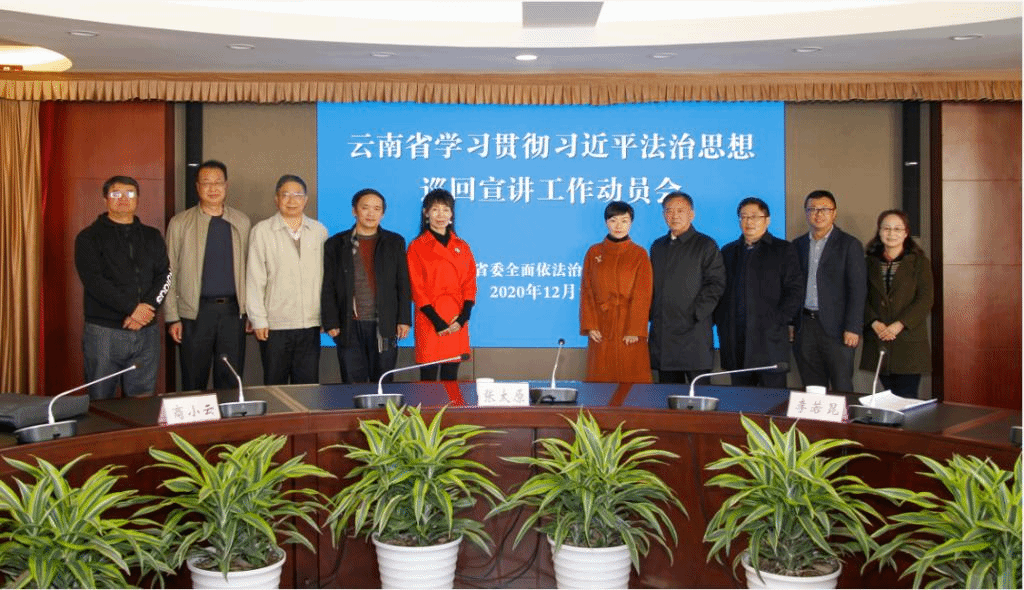 12月14日下午,中共云南省委全面依法治省委员会办公室举行“云南省学习贯彻习近平法治思想巡回宣讲工作动员会”。云南省委政法委常务副书记、省委依法治省办副主任李若昆同志传达了省委书记阮成发同志的重要批示精神,云南省委常委、省委政法委书记、省委依法治省办主任张太原同志作重要讲话。云南省委依法治省办副主任、省司法厅厅长商小云同志主持会议。kaiyun官网法学与社会学学院周梁云教授担任云南省学习贯彻习近平法治思想巡回宣讲团成员。