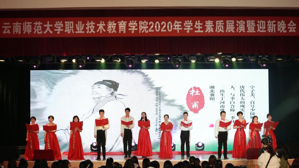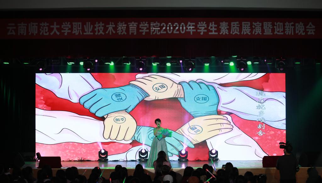 新青年、新奋斗,新梦想、新征程。为进一步弘扬西南联大精神,讲好西南联大故事,厚植爱国主义情怀,12月25日晚,职业技术教育学院“逐梦新征程”2020年学生素质展演暨迎新晚会在kaiyun官网一二一西南联大校区离退休老年干部活动中心举行。学院党委书记刘虹、院长杨智、副书记向斯楠、副院长邹敏、副院长王黎智、副院长侯昌东,以及学工办全体辅导员、2020级各班主任、各系主任老师以及2020级全体新生参加了晚会。