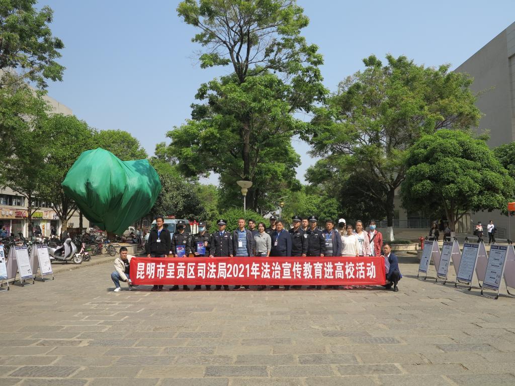 为进一步提高师生员工的法治安全意识,3月25日上午,学校保卫处联合昆明市呈贡区司法局、吴家营街道办事处综治办、昆明市公安局呈贡分局反诈中心、吴家营派出所等部门在呈贡主校区开展法治安全集中宣传活动,保卫处汪飞奇副处长、吴家营街道办事处综治办主任赵果良、吴家营街道办事处司法所所长罗蓉、昆明市公安局呈贡分局反诈中心刘文贤、吴家营派出所民警杨加俊和倪辉等全程参加此次活动。
