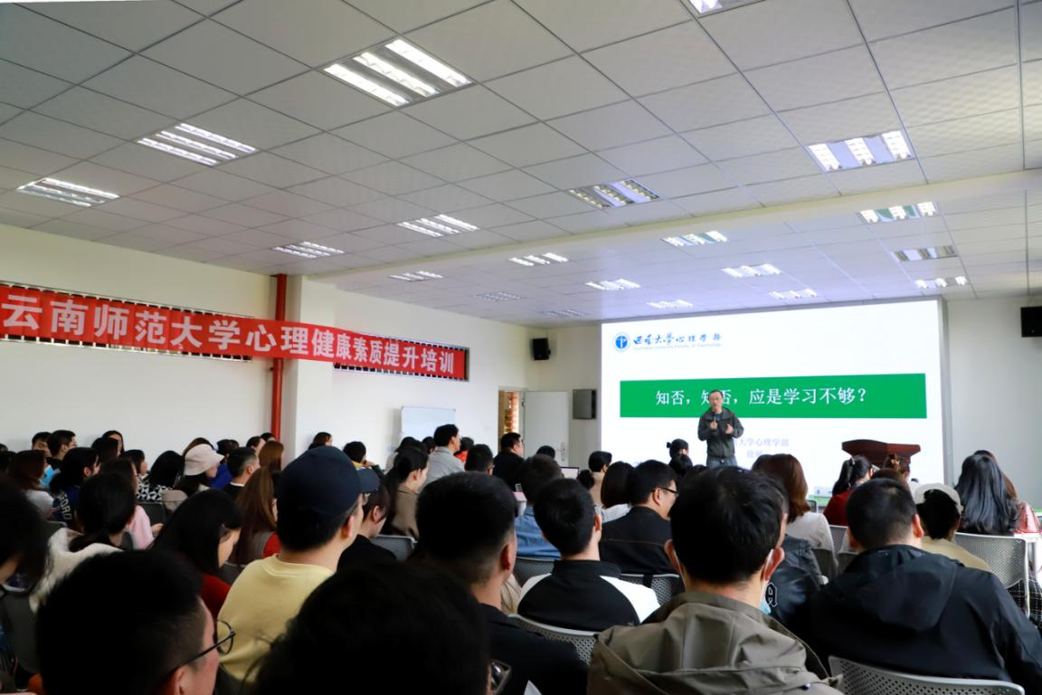 为深入贯彻落实《“健康中国2030”规划纲要》的要求,提高师生健康素养,深入开展“师生健康 中国健康”主题健康教育活动,4月7日下午,学校心理健康教育咨询中心特邀重庆心理学会教学委员会主任、西南大学心理学部徐展教授做题为《知否知否 应是学习不够》的专题讲座。本次讲座是由云南省学校心理健康教育师资培训与研究中心、云南省高校心理健康教育与咨询示范中心、kaiyuncom官方网站心理健康教育咨询中心和kaiyuncom官方网站应用心理专业硕士学位点联合开展,由心理健康教育咨询中心办公室主任尚云主持,心理健康教育咨询中心教师、各学院(部)心理辅导员、《大学生心理健康教育》课程教师团队、心理咨询员、心理协助员、应用心理学硕士研究生等近100人聆听了本次讲座。