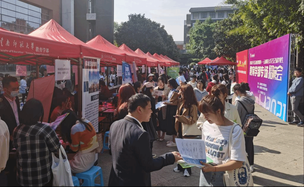 为贯彻落实国家、云南省关于2021届毕业生在疫情防控期间就业工作的要求,为毕业生提供广阔求职平台,积极促进学生就业,加强与用人单位的合作和交流,教育学部于4月13日在呈贡校区明德4号楼前广场举办2021届毕业生专场招聘会。学校就业处李红处长、刘文副处长等到招聘会现场指导。学部党委书记禹紫灵、学部主任李长吉到现场与用人单位深入交流。