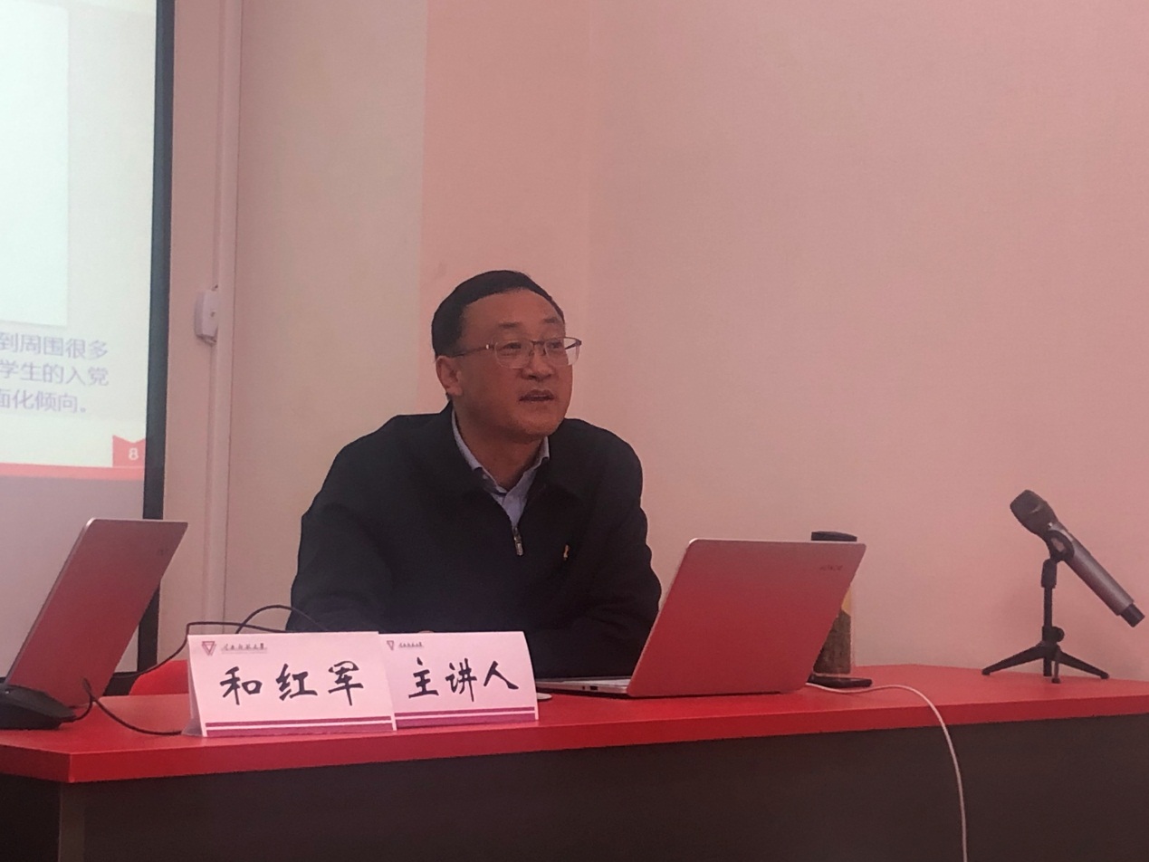 4月8日下午,音乐舞蹈学院党委书记和红军老师以《学习党章,践行党章》为主题,围绕党章的重要地位、发展历程、基本内容、牢固树立党章意识四个方面进行讲座。他强调,大学生要端正入党动机,补足精神之“钙”,要在政治、行动上自觉,自觉用党员的标准严格要求自己,争取早日成为一名光荣的共产党员。
