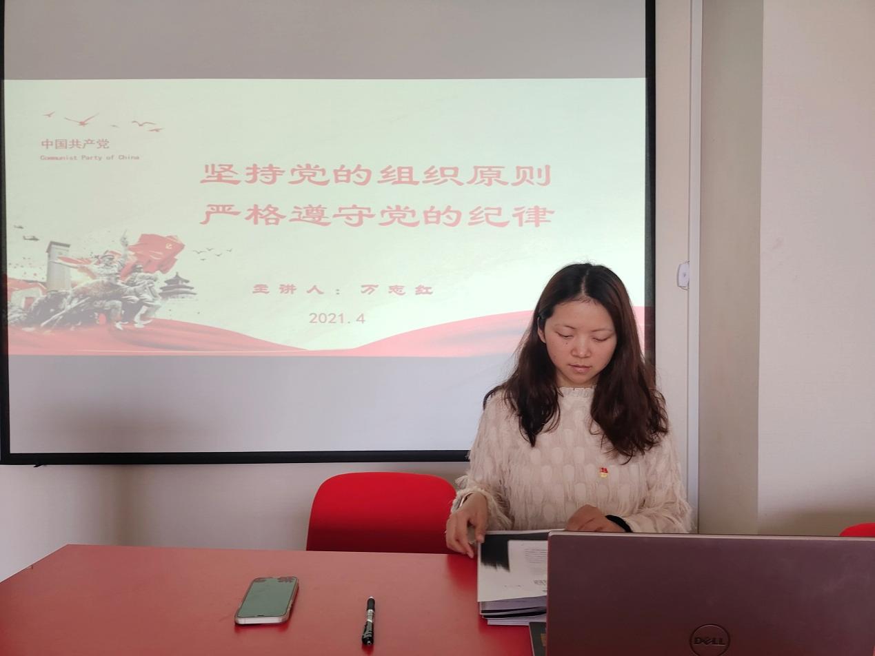 万志红老师以“中国共产党坚持什么样的组织原则?为什么要坚持这样的组织原则?”为切入点,开展《坚持党的组织原则,严格遵守党的纪律》为主题的第四个专题辅导,让积极分子了解到要坚持民主集中制,树牢“四个意识”,坚定“四个自信”,坚决做到“两个维护”,勇于担当作为。