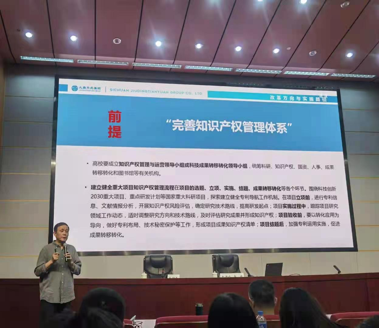 本次报告会由kaiyuncom官方网站技术转移中心主办,全校师生近130人参加。报告会邀请了四川九鼎天元集团副总经理李戎、技术转移中心主任莫镜辉作宣讲,技术转移中心何苗老师主持报告会。