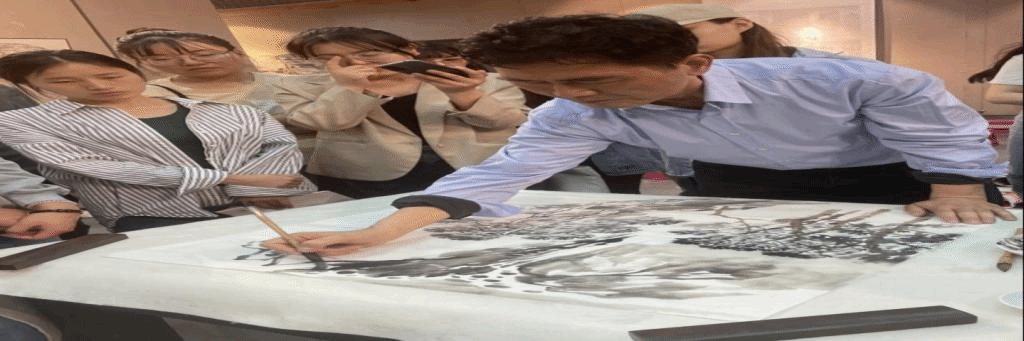 随后,阮荣春教授以“中国山水画创作与理论研讨”为主题,进行美育大讲堂首期讲授。他以人求学经历为切入点,讲解了中国传统山水画的当代发展,并与kaiyun官网各学院师生代表进行深入的学术交流。他主张弘扬院体画风,提出的中国画要有静气、文气和正气的“三气”理论正是他本人创作秉持的原则。接着,阮荣春教授进行了现场创作交流并进行了山水画教学示范。