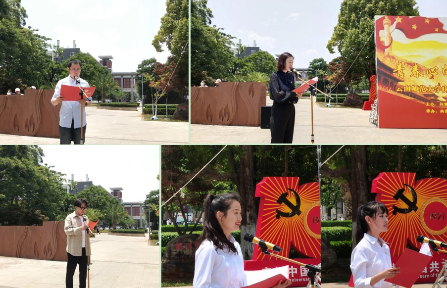 五四青年节来临之际,由校团委主办、物电学院团委承办的庆祝建党100周年暨新团员入团仪式于4月30日中午在呈贡校区红烛广场举行。校团委全体成员,物电学院相关领导,各学院(部)团委书记、新老团员代表等参加仪式。