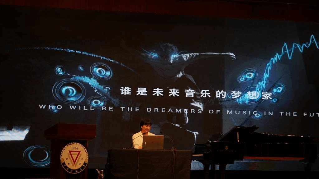 李小兵教授以自己创作的云合唱作品《我们》作为开场,向大家展示通过云端和人工智能技术,实现万人合唱的可能性。他围绕未来科技如何改变音乐,未来的音乐会是怎样的,谁会是未来音乐的创作者,谁是未来音乐的表达者,谁是未来音乐的教育者,谁是未来音乐的梦想家等问题探讨了未来音乐的无限可能。李小兵教授还从音乐创作上是否机器可以代替人,机器的创作是否有情感等展开讨论,并向大家展示了AI自动作曲软件在随机输入歌词后,30秒内创作出一首有伴奏有演唱的歌曲。李小兵教授还向大家介绍了目前最前沿的人工智能与音乐表演和音乐教育、3D音乐、音乐与脑科学等课题。