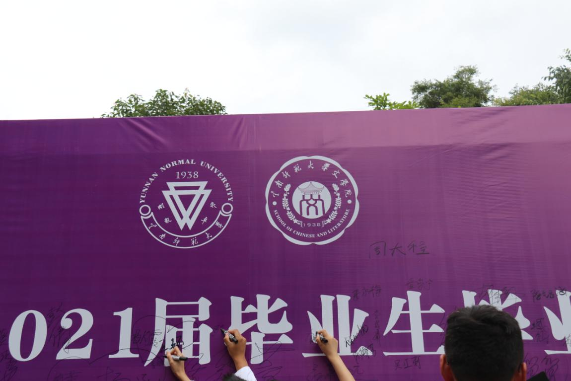最后,毕业生纷纷到留言墙上签名留恋。文学院2021届毕业生毕业典礼暨学位授予仪式至此结束。