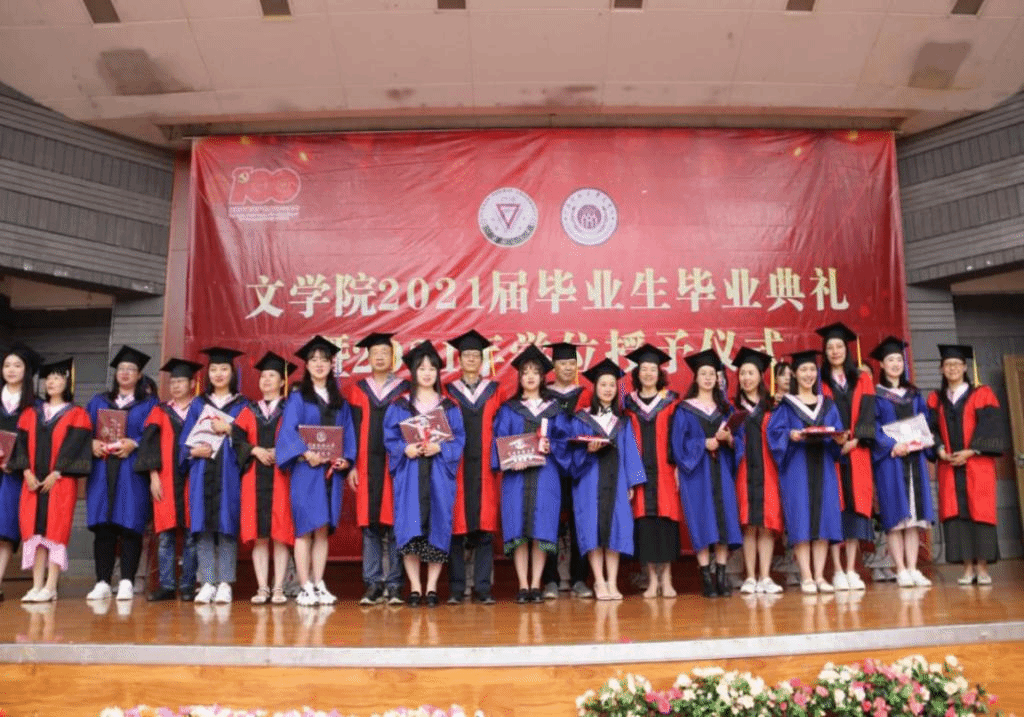 随后,文学院2021届毕业生毕业典礼暨学位授予典礼正式开始。老师们纷纷上台,为毕业生拨穗、颁发学位证书并与毕业生合影留念。拨穗,象征毕业生学有所成;沉甸甸的证书在手,是努力的成果,是老师的肯定,亦是知识的分量。