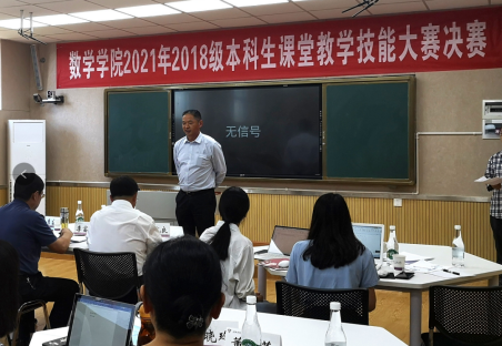 为提高师范生的教育教学能力、丰富校园文化生活、增强自信、提高专业技能,数学学院于4-7月举行了2018级本科生课堂教学比赛。本科生课堂教学比赛是提高师范生教学技能的重要途径之一,要求“全员参与、全院参与”,即每级学生在大三下学期“全部师范生”积极参加教学比赛,认真准备,通过比赛促进师范生教学技能和教学素养的提高;“全院教职工”参与教学比赛,开展讲习、课堂教学辅导、担任评委等。此次课堂教学比赛按初赛、复赛和决赛依次进行。本次大赛从教师口语、教态、课程内容设计、重难点把握、教法学法、信息技术使用、板书设计、说课能力等方面对选手进行综合考核。