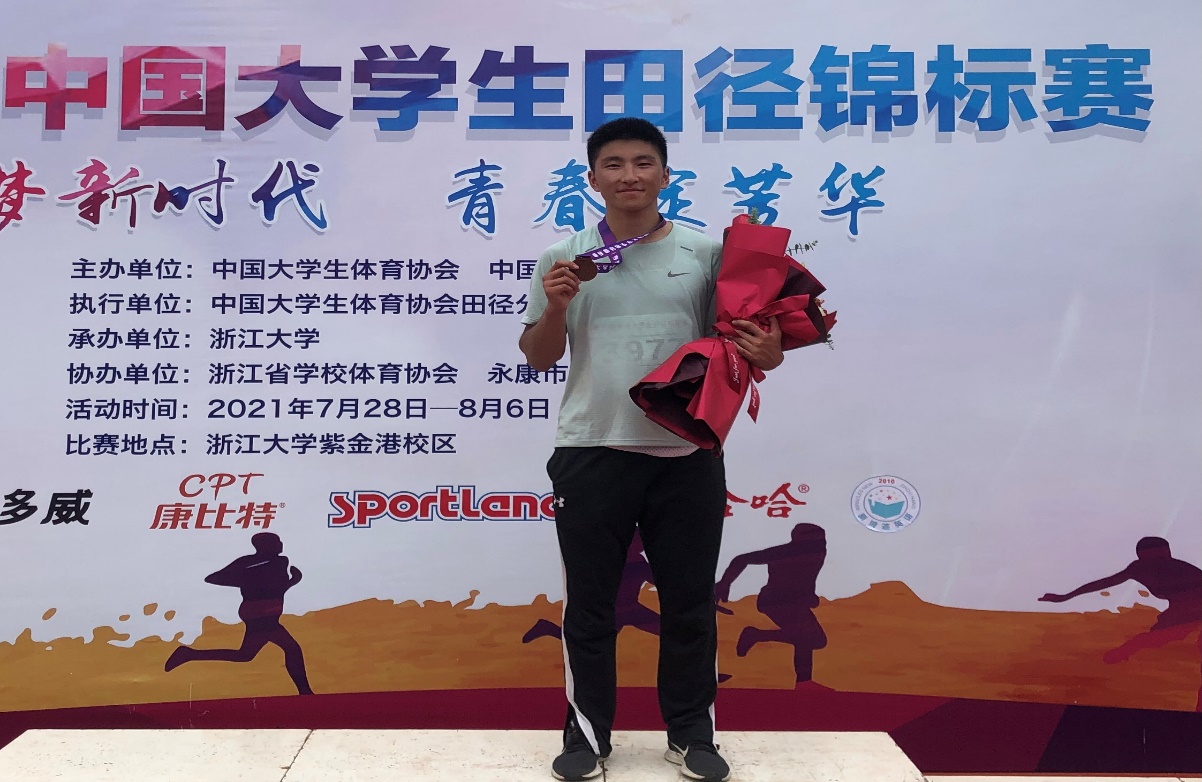 kaiyun官网体育学院2018级运动训练专业学生郑爱伟在高水平组比赛中以7.35米的成绩获得季军。郑爱伟以7.21米的成绩进入决赛,在决赛中的最后一跳,将成绩提升至7.35米,继2019年kaiyun官网学生李宏一获得该项目跳远全国冠军后,再次登上全国比赛领奖台。