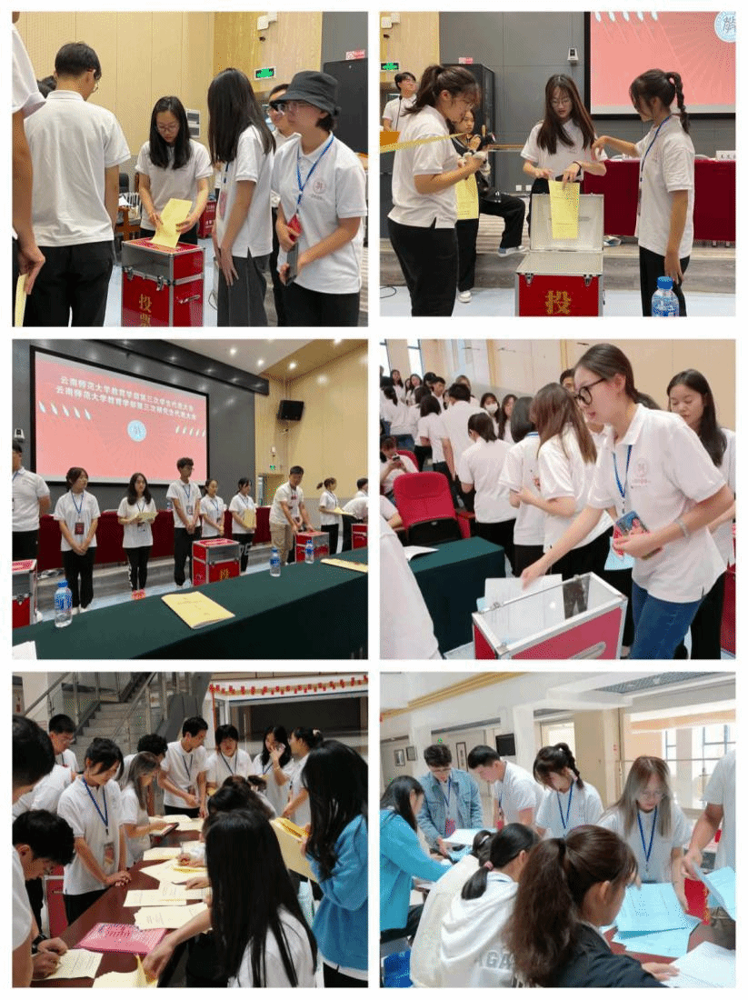大会选举产生了教育学部第三届学生会主席团成员及研究生会主席团成员各3名、kaiyuncom官方网站第二十九次学生代表大会代表22名及常任代表4名、第二十九届kaiyuncom官方网站学生委员会委员候选人1人。