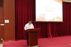 在主持人宣布此次会议正式开幕后,全体起立共同歌唱中华人民共和国国歌。首先,由党委书记周滔老师讲话,他谈到对国家、家庭、个人的责任,希望各位代表要立大志、明大德、成大才、担大任,听党话,跟党走,努力提高自身综合素质,练就过硬本领,锤炼高尚品格,以实现中华民族伟大复兴为己任。最后,周老师预祝本次学生代表大会取得圆满成功。
