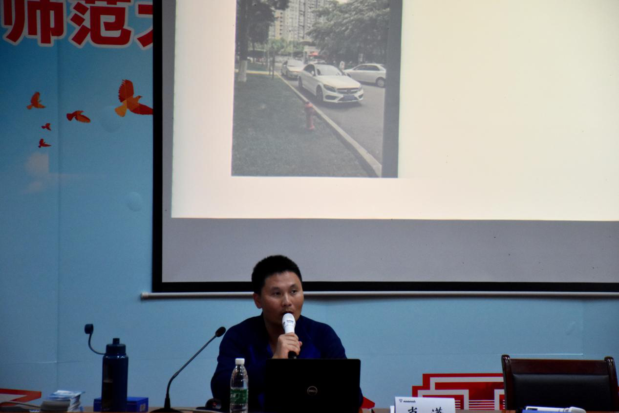 肖潇老师介绍了火灾的定义、危害和种类,通过视频的方式呈现了校园火灾的真实事例,介绍了常见消防设施的使用方法及火场求生与自救的措施,指出“消防设施保护好,火灾损失能更少”;最后,他强调安全是一种责任也是一种义务,倡导大家关注消防,珍惜生命。讲座过程中,肖老师通过互动提问提高了同学们的参与性。