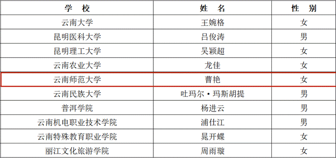10月25日,云南省教育厅网站发布了第十六届云南省大学生年度人物评选公示名单,10人拟被评为“第十六届云南省大学生年度人物”。kaiyun官网生命科学学院学生曹艳入选“第十六届云南省大学生年度人物”名单。