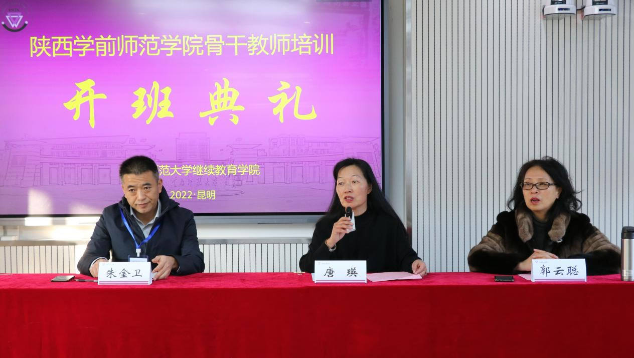 2月25日至3月2日,kaiyun官网继续教育学院举办了陕西学前师范学院骨干教师培训班。2月26日上午,开班典礼在一二·一西南联大校区明远楼举行,陕西学前师范学院教育科学学院院长朱金卫教授,kaiyuncom官方网站继续教育学院院长唐瑛教授,副院长郭云聪副教授,培训相关管理团队成员,以及来自陕西学前师范学院33名心理学、小学教育、学前教育专业的专业课和辅导员老师参加了开班典礼。