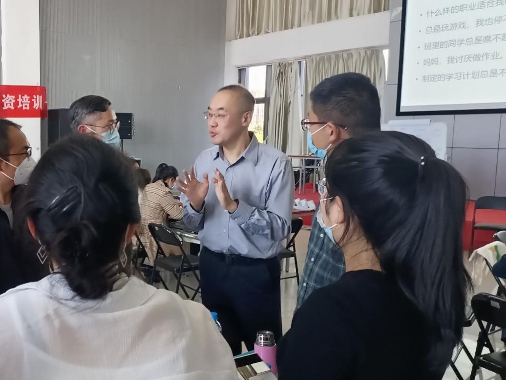 薛艺老师围绕 “建立关系——收集信息——分析问题——解决问题——结束咨询” 为参训人员详细阐述并模拟生涯咨询工作全流程,期间还为参训人员介绍了沟通技巧、生涯理论、工具策略等内容,同时鼓励老师们在生涯咨询过程中加强理论研究和实践探索,不断朝专业化、职业化、专家化发展,助己达人,努力成为生涯咨询的践行者、受益者、传播者。