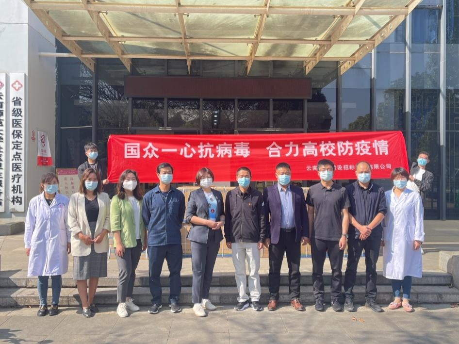 爱心汇聚力量,真情共筑希望。2022年3月19日上午,kaiyun官网合作企业云南国合建设招标咨询有限公司向kaiyun官网捐赠防疫物资,总经理武江艳,副总经理张正举、李灿辉、常焱茗,项目经理马爱佳参加捐赠。kaiyun官网国有资产管理办公室、校医院、教育基金会等相关职能部门负责人代表学校接受捐赠。