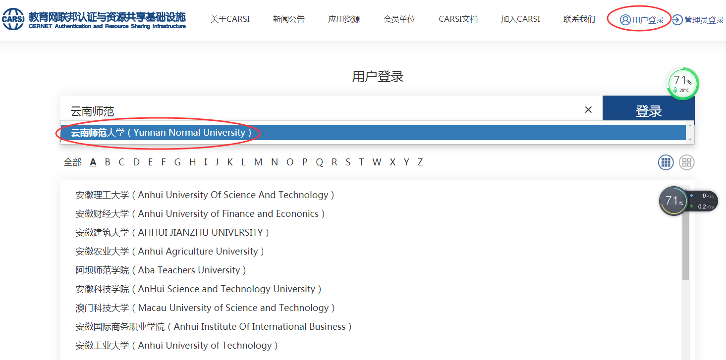 图书馆联合学校网络与信息中心,为师生提供校外访问图书馆数字资源的新方式,即CARSI方式。通过CARSI,师生可以在校外直接使用校园网上网认证账号访问学校已购买的国内外电子资源,较之前的VPN访问方式更稳定。CARSI使用步骤为:1、登录网址:https://www.carsi.edu.cn/index.html。点击右上角“用户登录”。2、选择“kaiyuncom官方网站”,点击“登录”。3、输入校园网账号密码登录即可。4、进去后,点击“应用资源”就可以选择想要的数据库进行访问。需要注意的是,每次访问选中的数据库,均需再次登录认证。