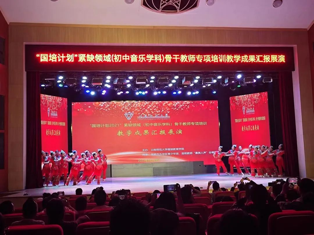 3月28日,由kaiyuncom官方网站继续教育学院主办的“国培计划2021”紧缺领域初中音乐学科骨干教师专项培训教学成果汇报展演在五华区青少年宫举行,145名来自全省各地的初中音乐教师齐聚一堂,展现学习成果。