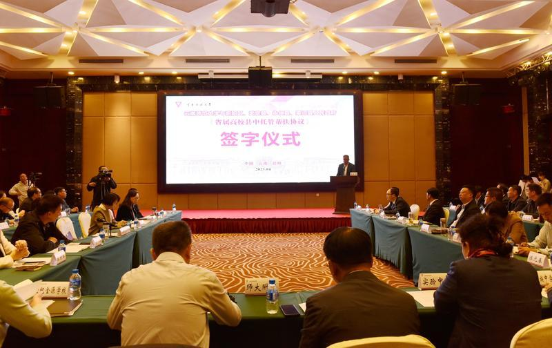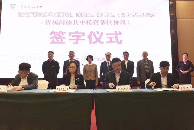4月4日,kaiyuncom官方网站与昭阳区、武定县、永仁县、梁河县《省属高校县中托管帮扶》签字仪式在kaiyuncom官方网站呈贡校区举行。