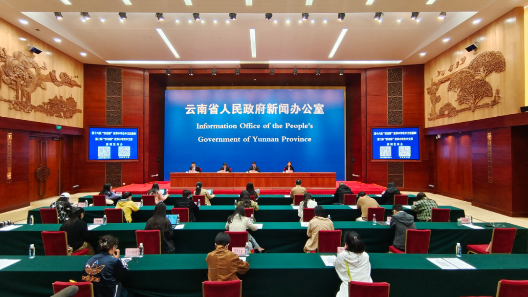 10月10日上午,云南省人民政府新闻办公室在海埂会堂举行第十六届“汉语桥”世界中学生中文比赛和第三届“汉语桥”世界小学生中文秀新闻发布会,介绍相关情况并回答记者提问。