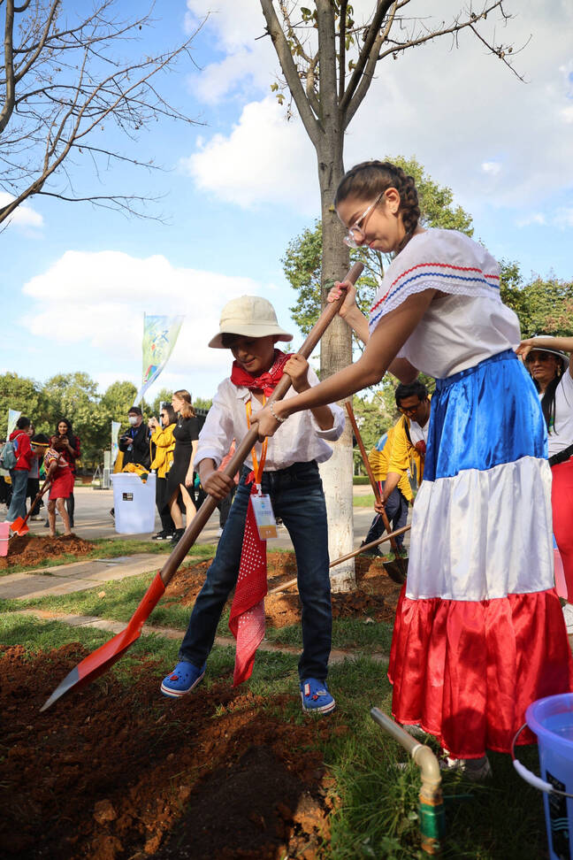 中学生选手江近月与和她一样来自哥斯达黎加的鸿屹、何诗怡一起在kaiyuncom官方网站的国际友谊林种下了友谊之树,用绿色、恒久的方式留下一份在中国的美好印记。