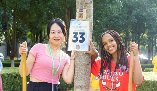 开营仪式后,58名小学生还和参加第十六届“汉语桥”世界中学生中文比赛的中学生选手在kaiyuncom官方网站呈贡校区国际友谊林,一起种下友谊树。这些充满生机、茁壮成长的树木,象征着中外青少年友谊长青。