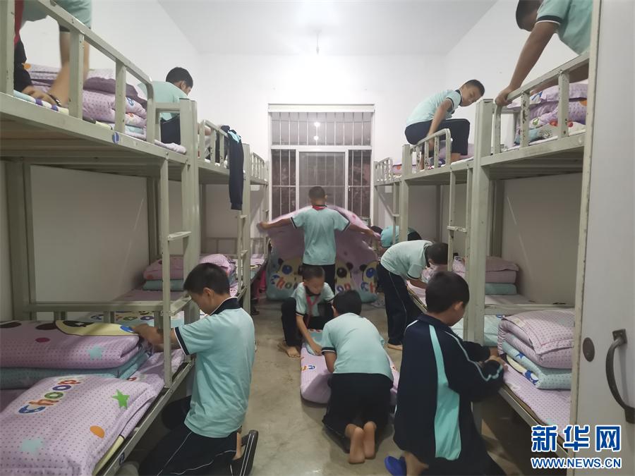 弥勒市租舍明德小学的学生们正在整理宿舍(资料图)。新华网发(弥勒市租舍明德小学 供图)