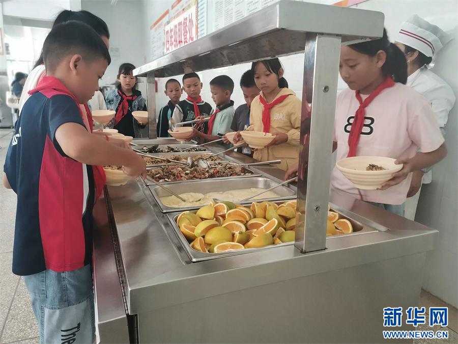 弥勒市租舍明德小学的学生们正在打饭(资料图)。新华网发(弥勒市租舍明德小学 供图)