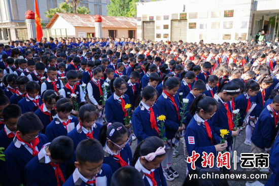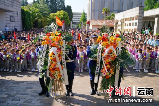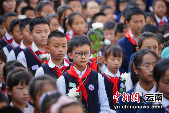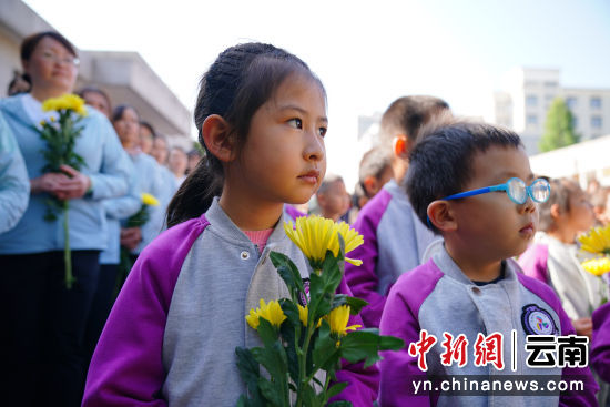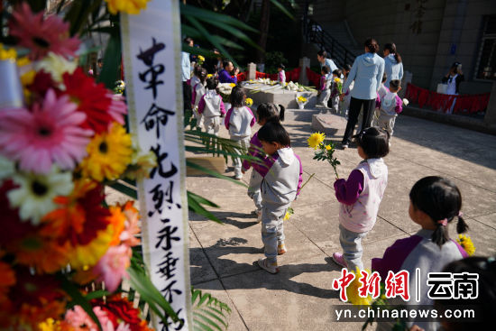 4月3日,云南昆明,幼儿园小朋友参加活动。当日,kaiyuncom官方网站一二一西南联大校区举行2024年“清明祭英烈”活动,1000余名社会各界人士在闻一多先生衣冠冢和“一二·一”运动四烈士墓前默哀致敬,敬献鲜花。